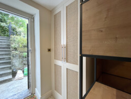 A hallway cupboard incorporating a special customer request for rattan doors. This allowed the wifi equipment inside the wardrobe to maintain it’s connection.
