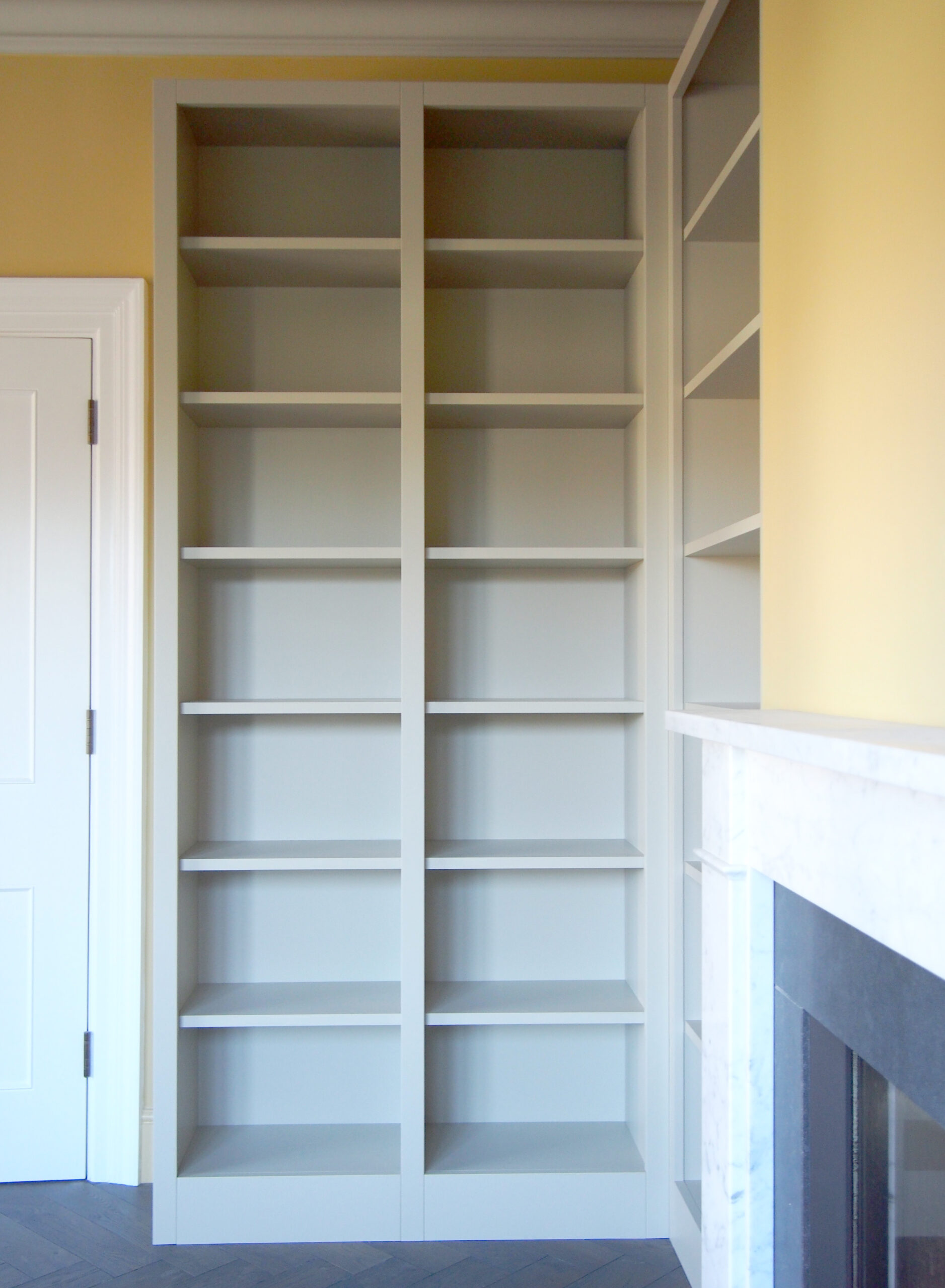 LocationSouth WoodfordMaterialsMRMDF Spray finished to match 'Portland Stone Dark'.Job DetailsWe were commissioned to create this set of bookcases for the living room of a large property in Woodford that had undergone a total renovation. We also did a walk-in wardrobe for the same property.